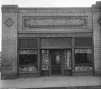 PC-2399 The Idaho State Employment Service Office to the right of the Bisbee Studio. (Sign also reads, "Effiliated with the Re-Employment Service;" a large sign holder with lights juts from above the entrance.