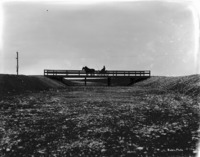 S 025 A man and a two-horse buggy stops on a low bridge across a dry canal.
