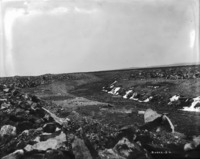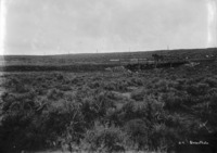 S 008 A two-horse buggy is driven along the edge of a flat, dry canal amidst the sage brush.