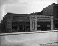 1726 Exterior of the Bisbee Studio, with addition, looking at the entrance on 2nd St W. Bisbee's motto, "Life and Art Are One," is above the entrance. The addition looks unoccupied.