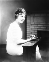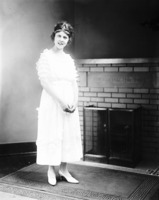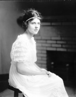 1719 Portrait of a young woman standing next to a fireplace in the Bisbee Studio.