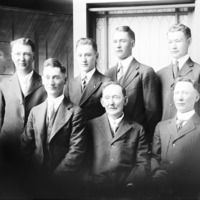 - Portrait of seven men of varying ages, all dressed in suits.