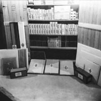 - Shelves of glass plate negatives at the Bisbee Studio.