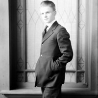 - Portrait of a young man, standing with his hands in his jacket pockets.