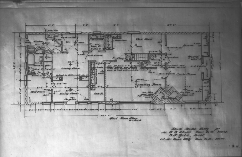 - Blueprints for the first floor of the Bisbee Studio. Plans drafted by Twin Falls architect Ernest Gates.