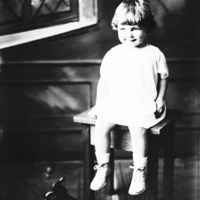 - Portrait of a little girl, seated on a high stool.