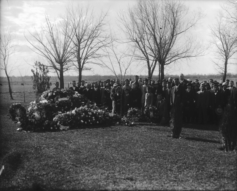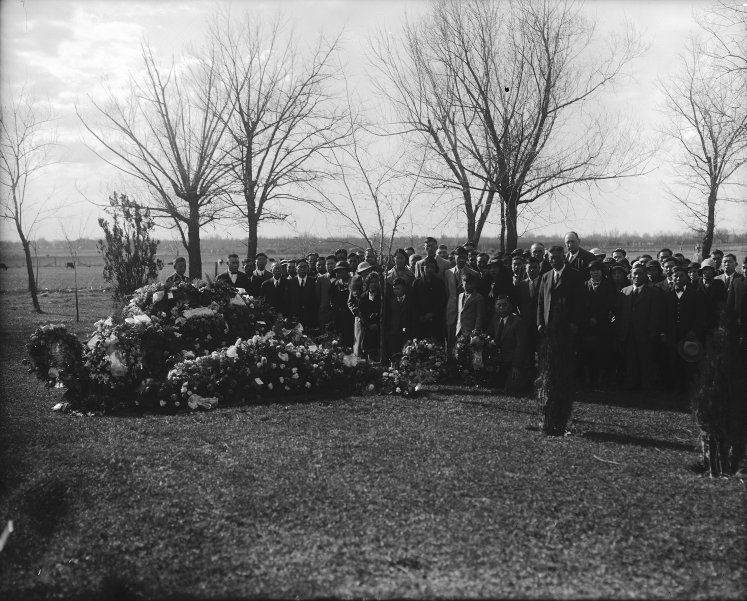 - Funeral service at gravesite, with a majority Japanese-American attendees.