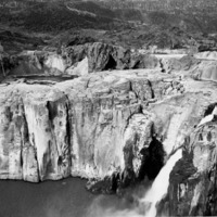 - Shoshone Falls, dry, with construction activity on upper levels.