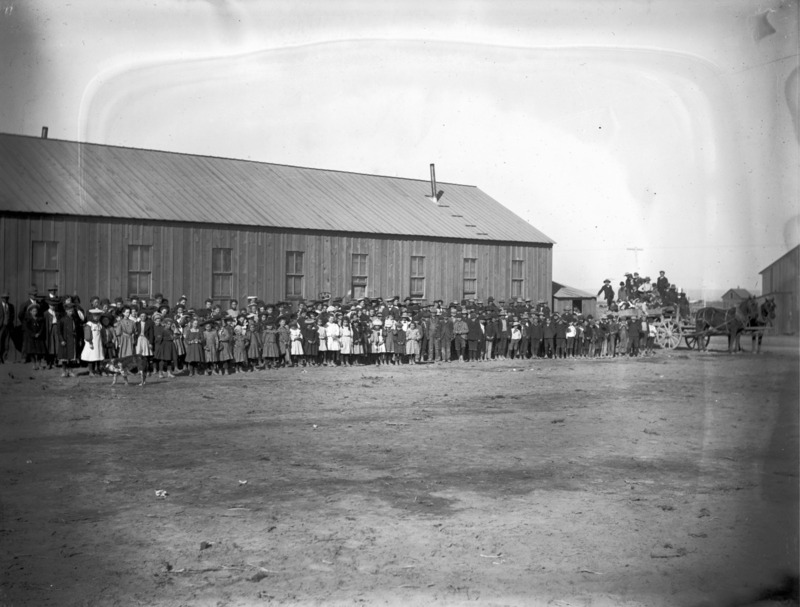 - A large group of school children posed at the side of the first school in Twin Falls.
