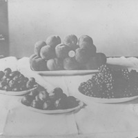 - "Idaho Fruit. Snake River Valley" Plates of peaches, plums, and grapes arranged on a table.