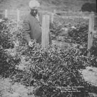 - "First Year's Crop of Dewberries. Perrine Ranch. Netted $700.00 Per Acre;" man standing in a berry patch.