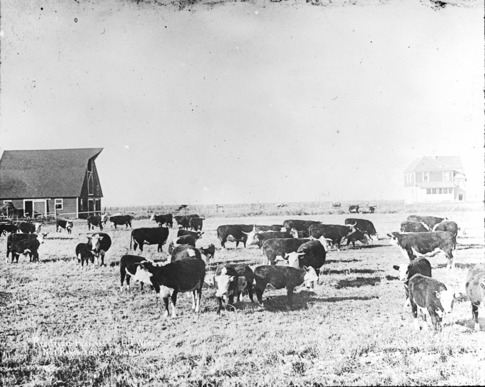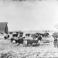 - "Registered Herefords on H.T. West's No. 1 Ranch, 1 Mile South of Kimberly;" cattle stand in a field; a barn and house in the background.