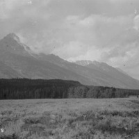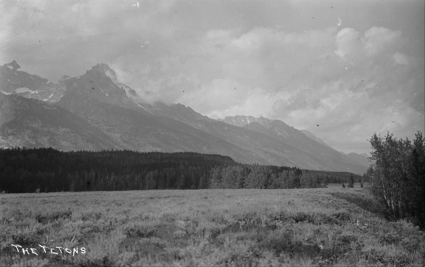 - "The Tetons;" meadow in foreground