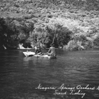 - "Niagara Springs Orchard Co, Trout Fishing;" two men fish from a boat