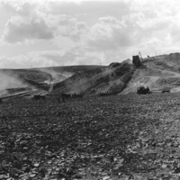 - "Top of Oakley Dam;" crews working at moving fill dirt