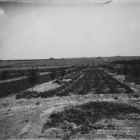 - "Orchard and Strawberries. Second Year Under Cultivation; George Epperson Farm. North Side;" irrigated field, with farmstead and several buildings in background