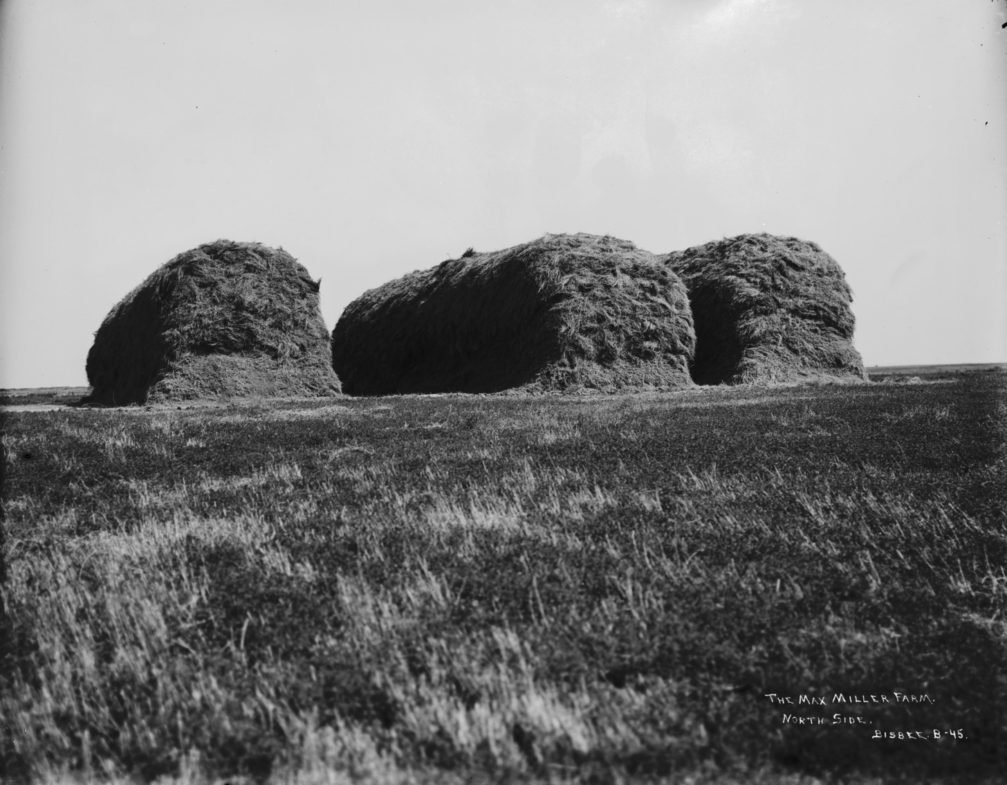 - "The Max Miller Farm, North Side;" three large haystacks in a field