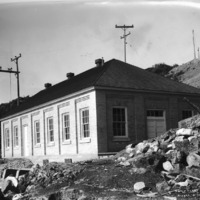 - "Pump Plant #2;" brick pump plant building on the side of a hill