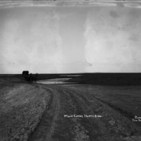 - "Main Canal, North Side;" two horses and buggy stand on the berm along the canal