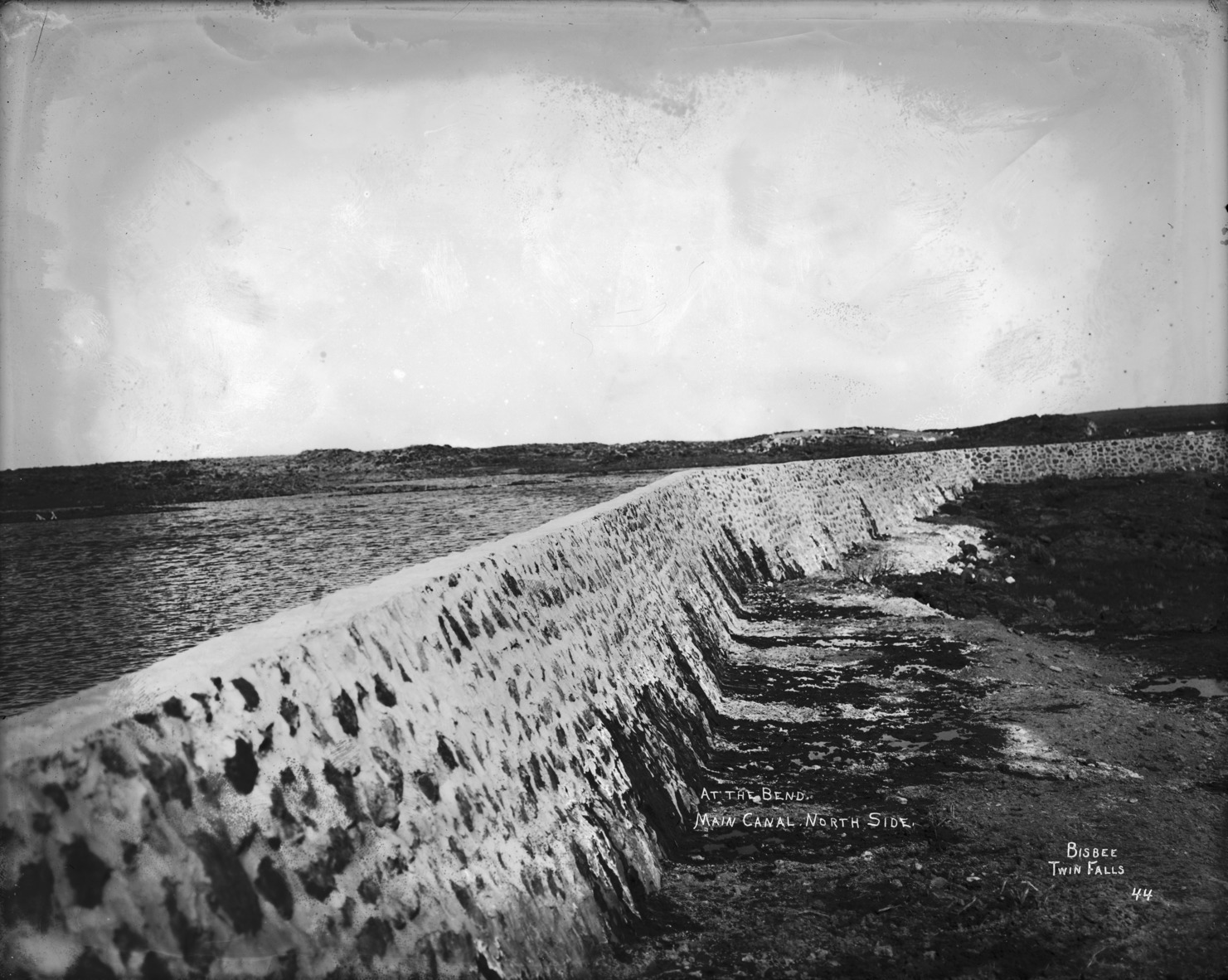 - "At the Bend. Main Canal, North Side;" wide view of a curve in the wall of the canal