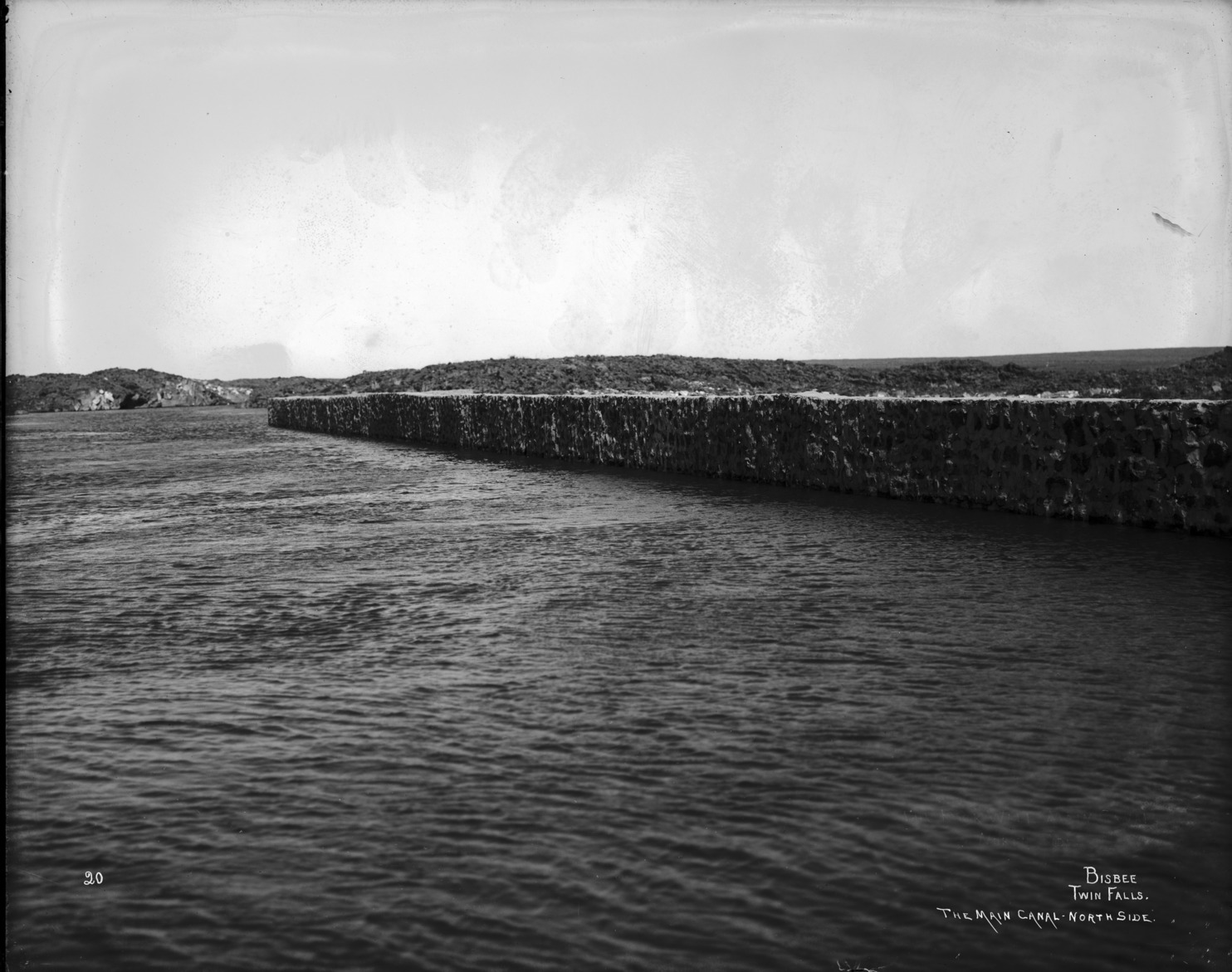 - "The Main Canal; North Side;" water fills the canal next to a rock wall.