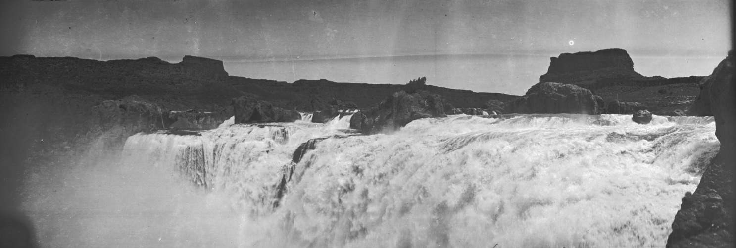 - Panoramic view of Shoshone Falls from the south side of the canyon.