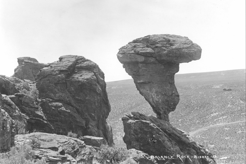 - "Balance Rock;" view of Balanced Rock and the rock formations to the east.