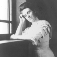 - Jessie Bisbee poses standing with her head in her hand, as she leans against a window.