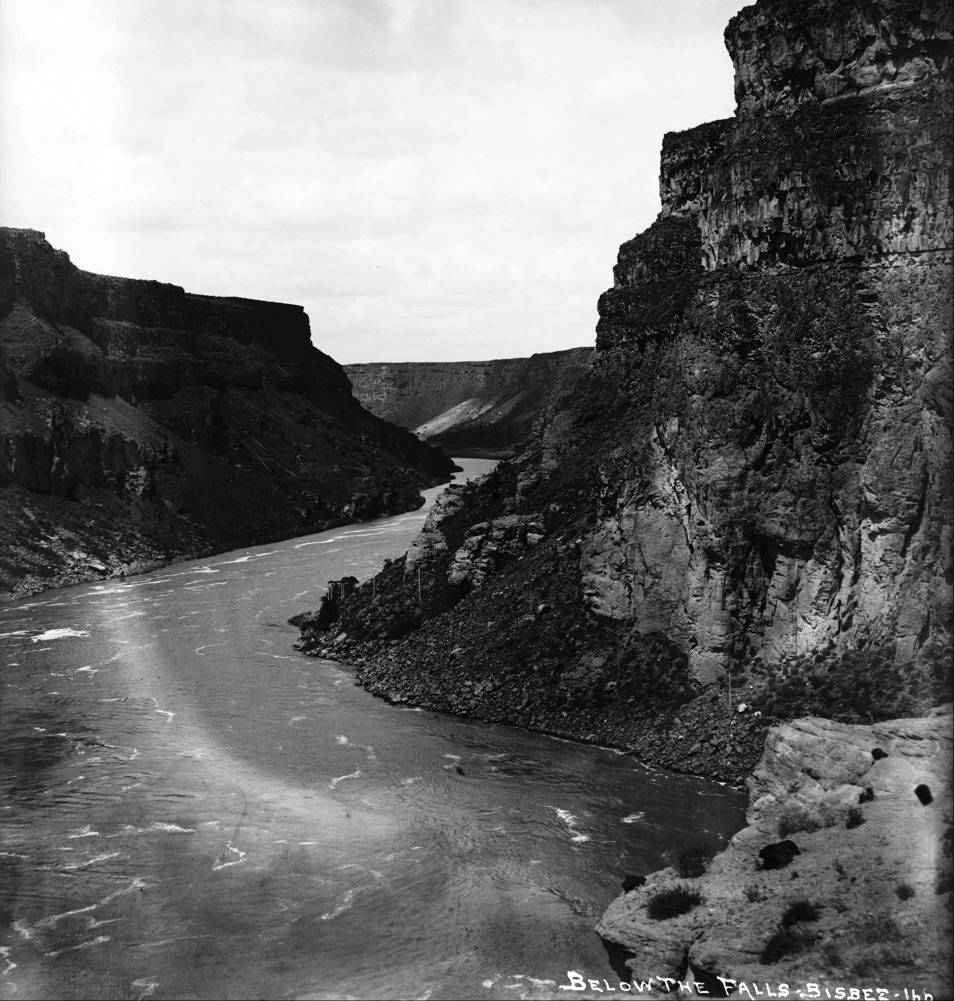 - "Below the Falls;" view west down the Snake River Canyon, below Shoshone Falls.