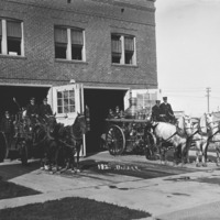 - The Twin Falls Fire Department. Seven men pose with two horse-drawn fire cartsin front of the fire station.