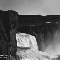 - "Shoshone Falls;" view of the Falls from the north side, with hotel in the background.