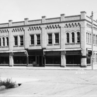 - Corner view of the Consolidated Wagon and Machine Company, a large masonry building. A man stands on the sidewalk next to the building. {The building is also known as the Cain's Furniture Store.}