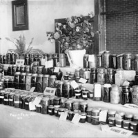- "Fruit Fair - 1911;" jars of canned fruit and vegetables are displayed on risers at the Twin Falls County Fair.