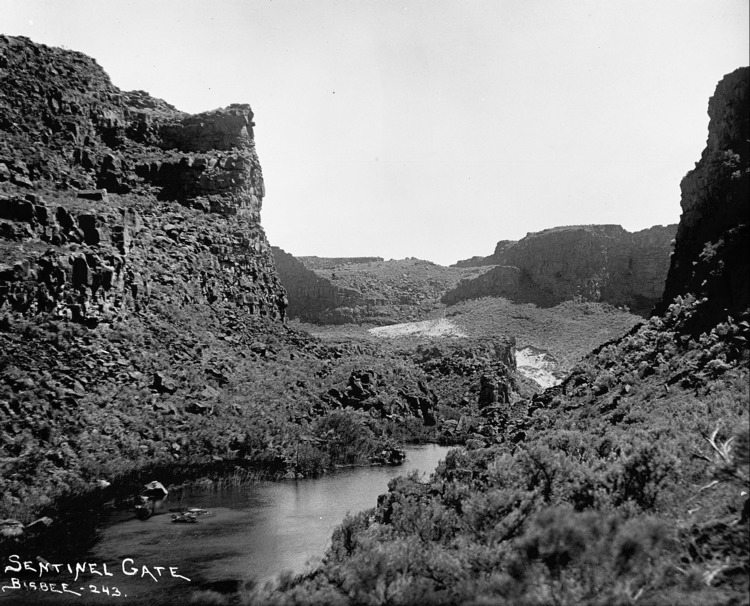 - "Sentinel Gate;" tall rock formation in the Snake River Canyon at Devil's Corral.