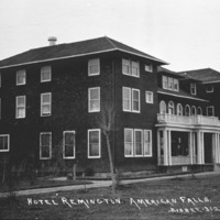 - "Hotel Remington. American Falls;"three-story brick hotel with a balcony over a colonnade front porch.