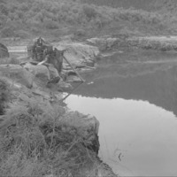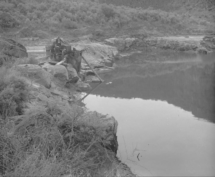 A pumping station in the Snake River Canyon; pond is full.