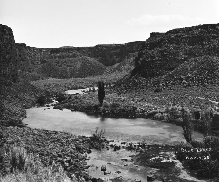 - "Blue Lakes;" looking northeast up the Blue Lakes Canyon from the bottom of the grade to the I.B. Perrine Ranch.