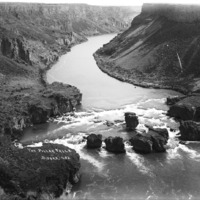 "Pillar Falls;" waterfall in the Snake River Canyon from the north rim.