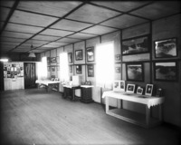1788 Interior of the Bisbee studio; room with framed photos hung on walls and on tables.