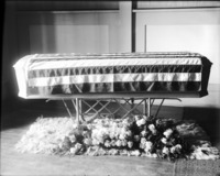 1783 Flag-draped coffin, flowers displayed beneath with a ribbon reading "Bert."