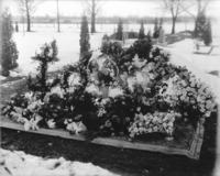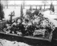 1780 Winter gravesite surrounded with flowers.