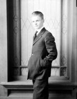 1753 Portrait of a young man, standing with his hands in his jacket pockets.