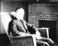 1757 Autumn display of gourds in front of one of the fireplaces in the Bisbee Studio. An embedded epigraph reads, "Trifles Make Perfection."