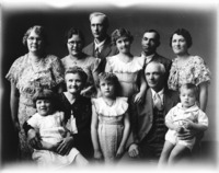 1748 Portrait of a family of eleven people (three men, four women, three girls, and one boy).