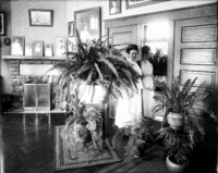 1759 Jessie Bisbee, near a mirror in the Studio's main room, surrounded by plants.