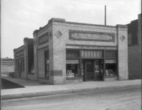1760 Exterior view of the Bisbee Studio before addition, looking at the front entrance (with Bisbee's motto "Life and Art Are One") and along 2nd Ave S. A sign in the background reads, " P.J. Grossman, Undertaker and Embalmer; successor to H. E. Hunt and Co."