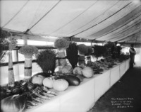 B 092 "Tri-County Fair; October 1,2,3, 1913; Jerome, Idaho;" produce display in a large tent