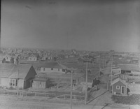 227 Wide view of Twin Falls (taken from the roof of Bickel School). Lincoln School directly across the alley on the right foreground. The Episcopal Church is to the right of the school, and the Presbyterian and Methodist Churches are on the right background. (Descriptions from Twin Falls News, April 2, 1909.) -