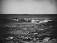 1962 A ladder propped against rocks in a crevice of a canyon wall, likely near Shoshone Falls.