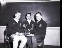 KEL 051 Diary products contest winners display their team trophy. The Kimberly team won the South Magic Valley district FFA dairy products contest. From left to right are Marvin Anderson, Loren Honstead and John Hamby. Anderson also was the individual high point scorer in the contest.